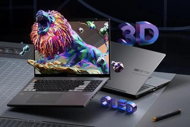 华硕还推出了新款ProArt StudioBook 16 3D OLED(H7604)和VivoBook Pro 16X 3D OLED(K6604)。这两款笔记本电脑最大的亮点是装备了支撑裸眼3D OLED屏幕,华硕称其为“Spatial Vision”,而眼球追寻技能可保证屏幕画面一直在用户焦点上。
